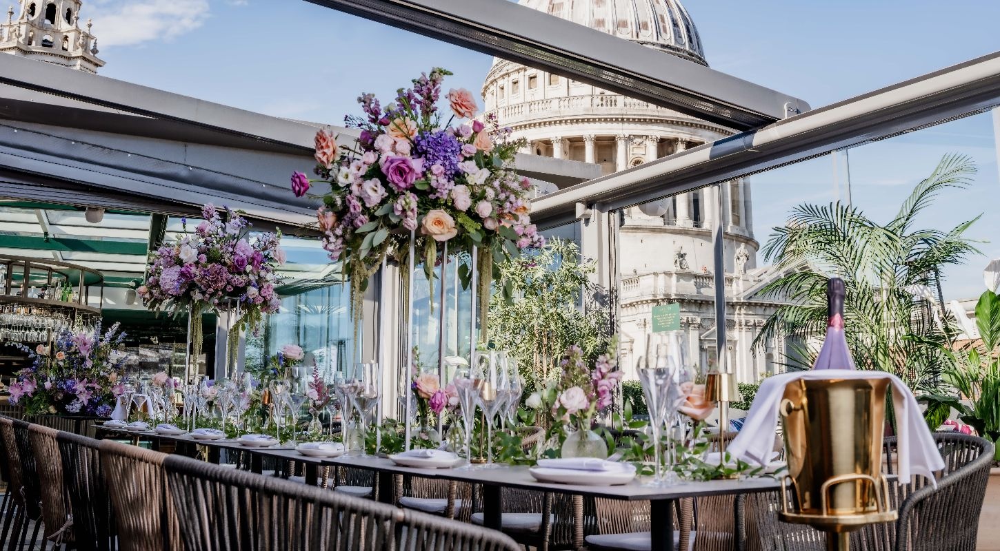 Say ‘I do’ above the city. With St Paul’s and London’s skyline as your backdrop, Sabine is a rooftop oasis made for unforgettable celebrations. From intimate ceremonies to stylish receptions, we’ll set the scene with seasonal menus, champagne toasts and skyline views that wow.